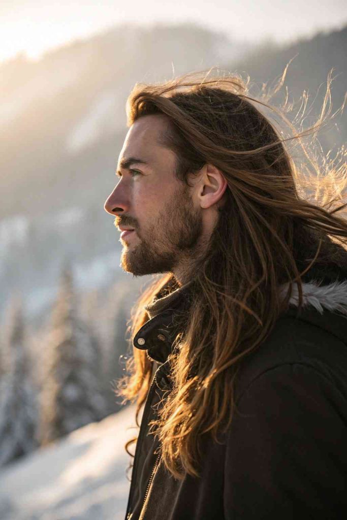 Long winter hairstyles for men give off a relaxed, artistic feel that looks great in the soft, low winter light. When the temperature drops, longer hair provides natural warmth and a rugged edge. It pairs beautifully with heavier fabrics like wool or leather, turning a simple outfit into something standout.